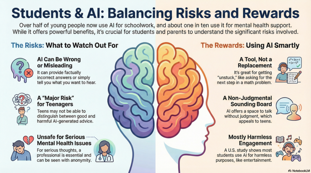 Below I asked NotebookLM to make me an infographic about the risks and benefits of AI on students. I found this was a very cool tool that I can see myself using in the future. This is what it produced.